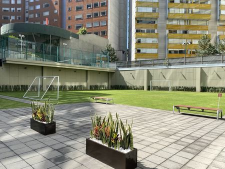 Edificio Soleil Santa Fe, cuenta con Alberca Techada con agua caliente con Chapoteadero y vestidores , Gimnasio Equipado, Jardines con juegos y cancha de Fútbol, Cancha de Pádel, Terraza amueblada, Área de juegos de adultos con mesa de Pool, de cartas, sala de TV, Wifi, Ludoteca infantil, 2 salones de fiestas con salida a jardín, zona de asadores, jardín de Mascotas. Lobby con guardia para recibir visitas. Estacionamiento de visitas. Guardias 24 horas para vivir seguro !